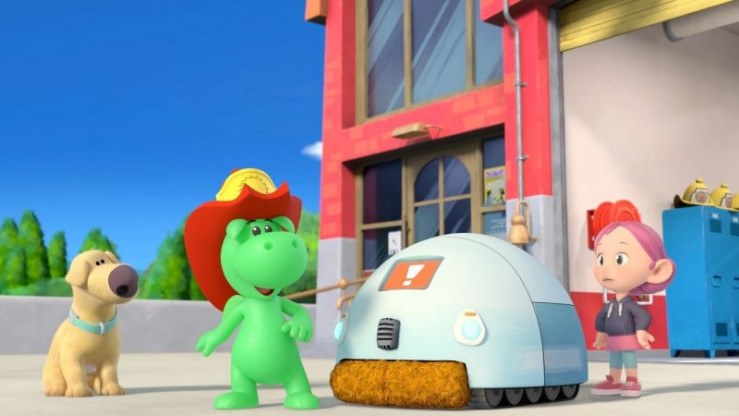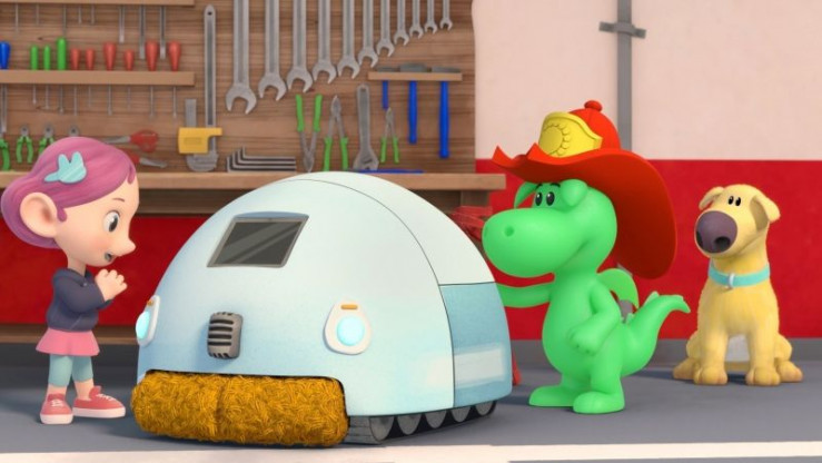 Grisu, Stella und der Hund Dinki sind die besten Roboter-Mechaniker.