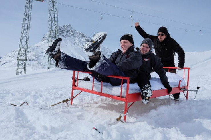 Im Schneesturm ist Moderator Tommy Scheel auf dem Weg zum eisigen Übernachtungsort. Hier müssen Leopold und Kenneth im umgebauten Bett einen Riesenslalom meistern. Der Gewinner kann bequem ruhen, der Verlierer muss auf der steilen Piste schlafen.