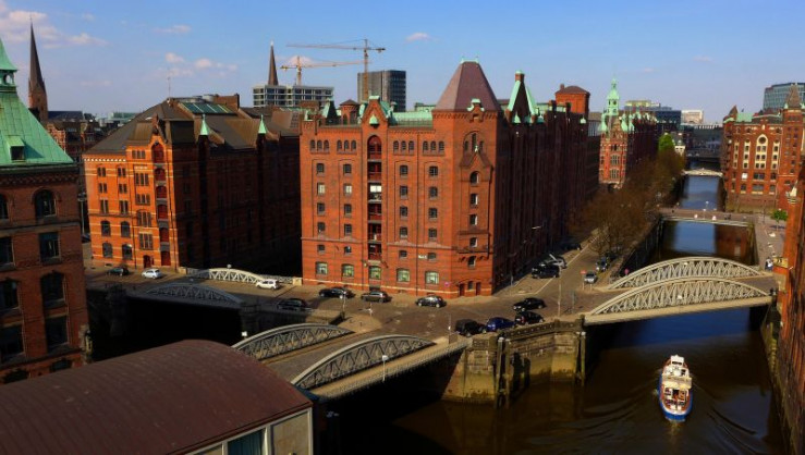 Seit Juni 2015 zählt die 1888 als größtes Lagerhaus-Ensemble der Welt erbaute Hamburger Speicherstadt mit benachbartem Chilehaus zum UNESCO-Weltkulturerbe.