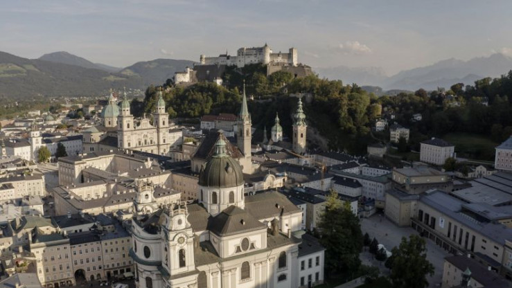 Blick über Salzburger Altstadt und Festung Salzburg.