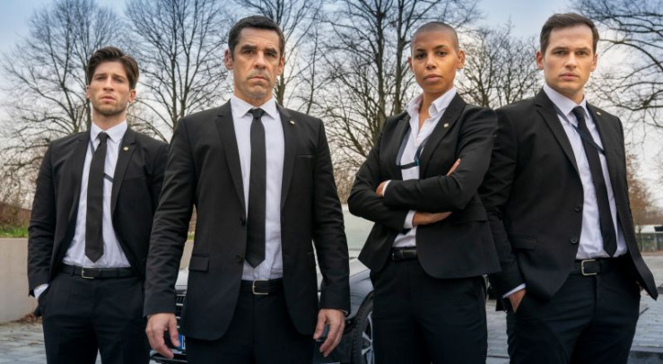 V. li. n. re.: Sie sind Personenschützer des BKA: Marco (Slavko Popadic), Jan (Tobias Oertel), Aybi (Pia-Leokadia Bucindika) und Matze (Sascha Weingarten).