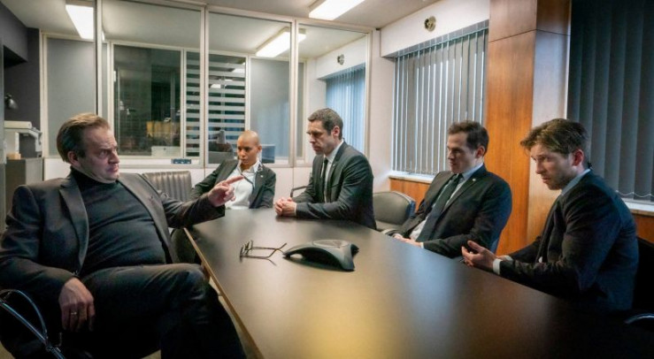 Ihlenburg (Stephan Schad, li.) gibt Anweisungen an das BKA -Team aus Aybi (Pia-Leokadia Bucindika, 2. v. li.), Jan (Tobias Oertel, Mitte), Matze (Sascha Weingarten) und Marco (Slavko Popadic, re.).