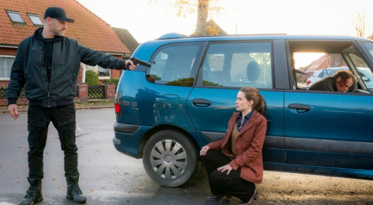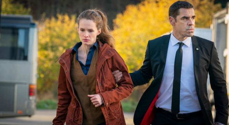 Der BKA-Beamte Jan Schäfer (Tobias Oertel) beschützt die Kronzeugin Fiona Weibel (Marlene Tanczik).