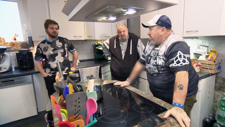 Willy (re.), Günni und Marvin müssen den Haushalt ohne Willys Frau Tanja bewältigen