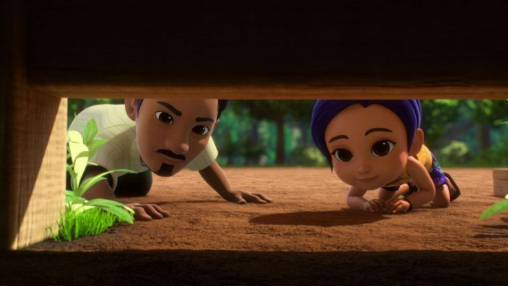Die kleine Nanu (li.) aus Bangladesch hat bei den SuperWings ein Paket mit Spielzeug und kleinen Snacks für eine kleine Katze, die sich unter ihrer Veranda versteckt hält, bestellt.