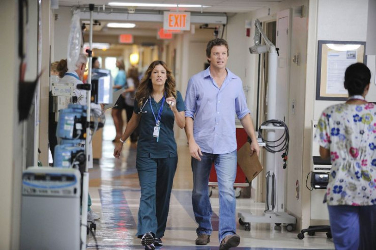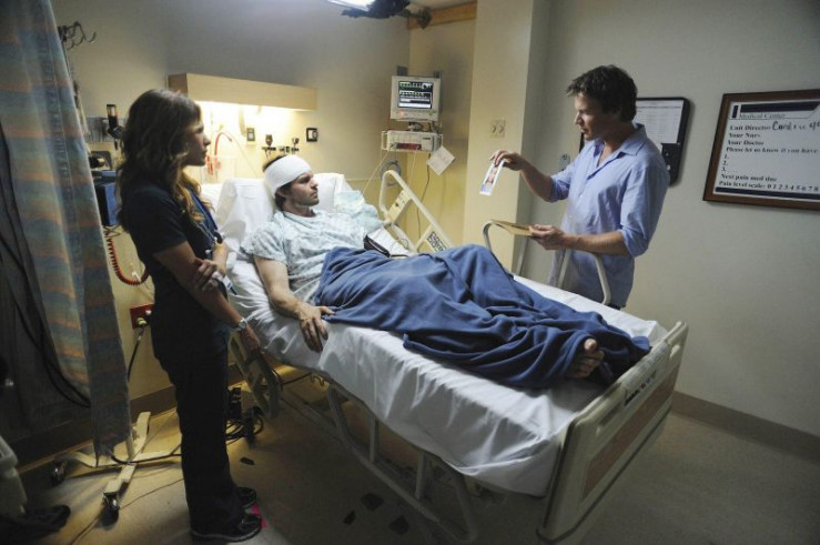 Callie (Kiele Sanchez) bringt Jim (Matt Passmore) zu dem Patienten, der angeblich Zeuge eines Mordes geworden ist.