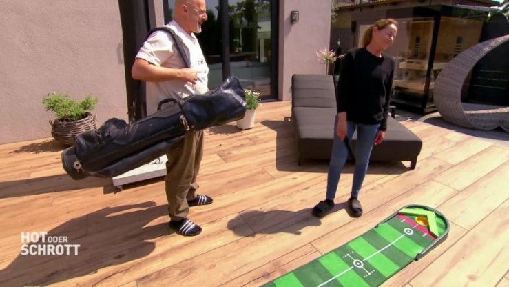 Golfspieler kennen das Problem: schlägt man beim Training einen Ball, muss man ihn anschließend mühsam wieder einsammeln. Mit der "Boomerang Auto Puttingmatte" soll dieses Problem der Vergangenheit angehören. Der Hersteller verspricht realistisches Golftraining mit automatischem Ballrückwurf. Die Allestester greifen zum Schläger und testen ihr Handicap.