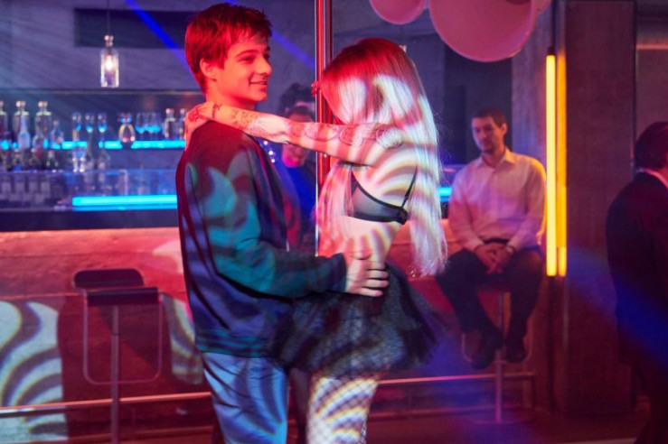 Auf dem Junggesellenabschied von Stefan in einer einschlägigen Bar amüsiert sich Stefans neuer Schüler Robin (Niklas Nißl, l.) prächtig.