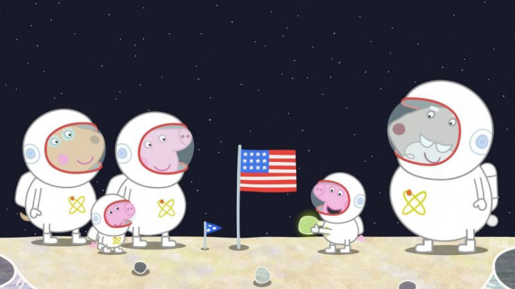 Oma Wutz und ihre Freundinnen spielen heute die Apollo Mondlandung nach. Peppa und Schorsch schließen sich an und Opi Mümmel hat ihnen sogar seine Rakete ausgeliehen. Als alle an Bord sind, startet Opi Mümmel die Rakete und fliegt bis zum Mond. Dort stellen sie eine kleine Flagge auf bevor sie wieder nach Hause zurückkehren und es sich bei Tee und Kuchen gutgehen lassen.