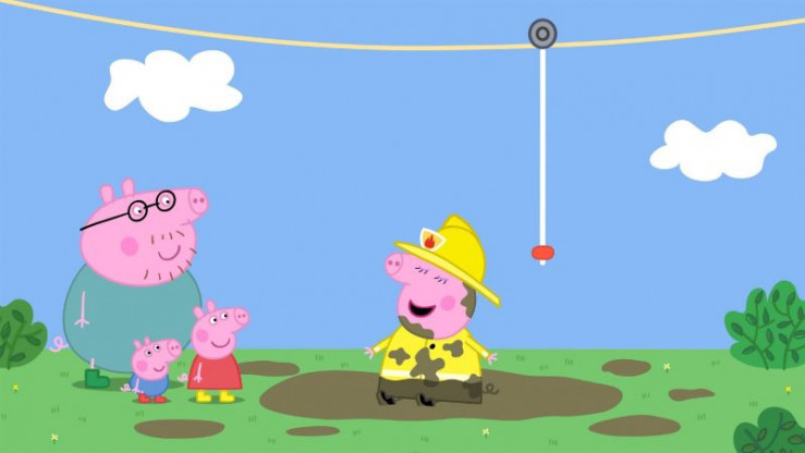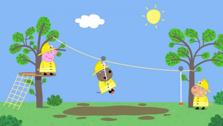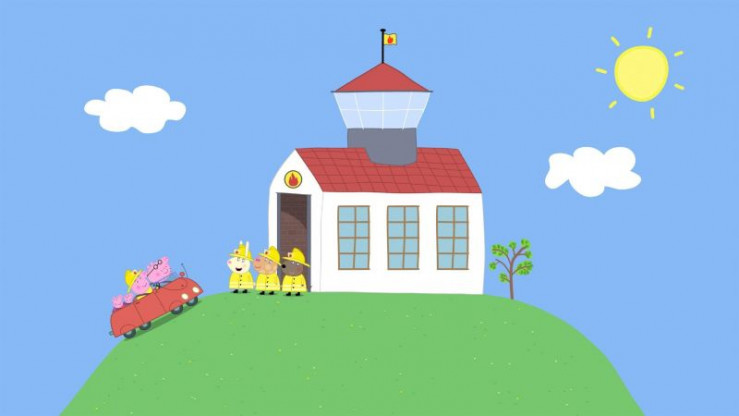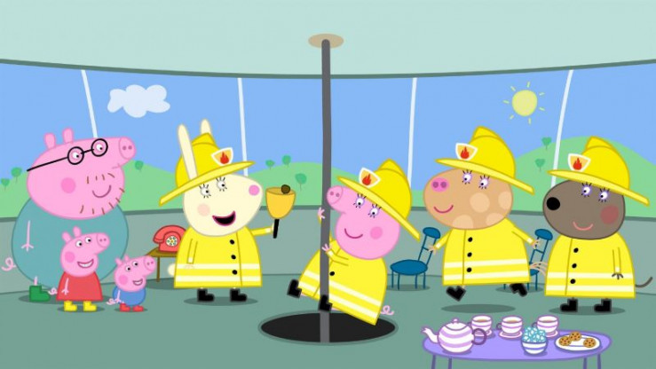 Heute ist Übungstag für die Mütterfeuerwehr. Mama Wutz (li.) schließt sich an, um das Feuerlöschen zu üben. Sobald der Alarm ertönt, werden die Helme aufgesetzt, an der Rutschstange runter gerutscht und schnell aus der Station gefahren, um draußen zu üben. +++ Die Verwendung des sendungsbezogenen Materials ist nur mit dem Hinweis und Verlinkung auf RTL+ gestattet. +++