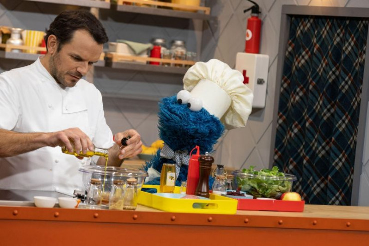 Krümelmonster passt genau auf, was und wie Koch-Experte Steffen Henssler kocht.