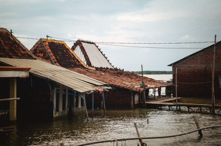 Bis zu 15 Zentimeter im Jahr steigt der Ozean ? das kleine Küstendorf Timbulsloko ist Opfer von Klimawandel, Boden-Absenkung und Küstenerosion.