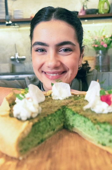 Die Quiche hat Lucie mit einer Grünkohl-Creme auf knusprigem Boden zubereitet.
