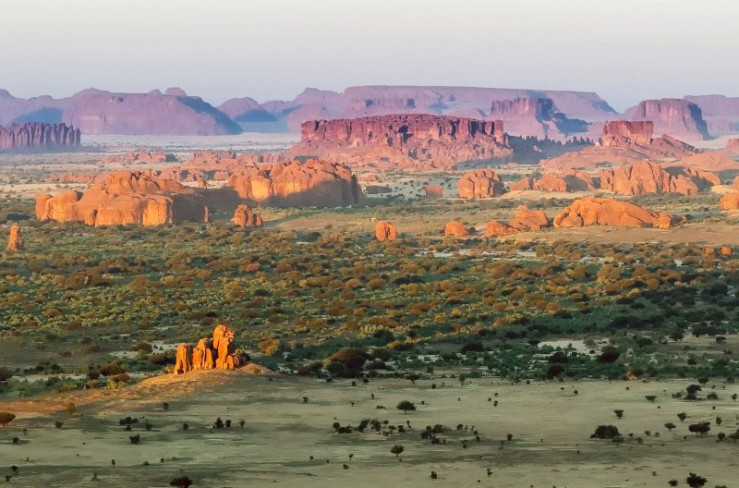 Ranger patrouillieren auf Kamelen durch das Ennedi-Massiv. Kamele können wochenlang ohne einen Tropfen auskommen. Endlich am Wasser, trinken sie bis zu 200 Liter auf einmal.