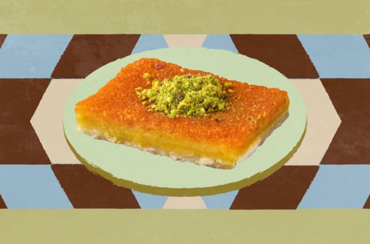 Küchenchef Qais Malhas bereitet die palästinensische Variante von Kunafa zu und verrät ihr Geheimnis: die cremige Käsefüllung.
