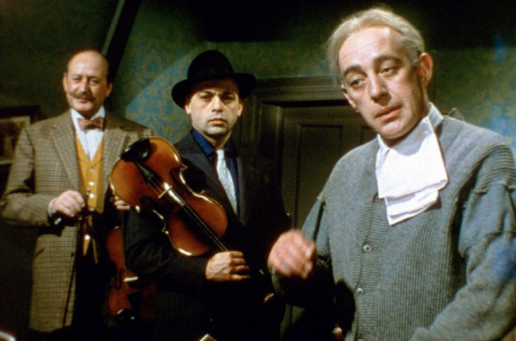Die Freunde Marcus (Alec Guinness, re.), Louis (Herbert Lom, Mi.) und Claude (Cecil Parker, li.) musizieren gemeinsam.