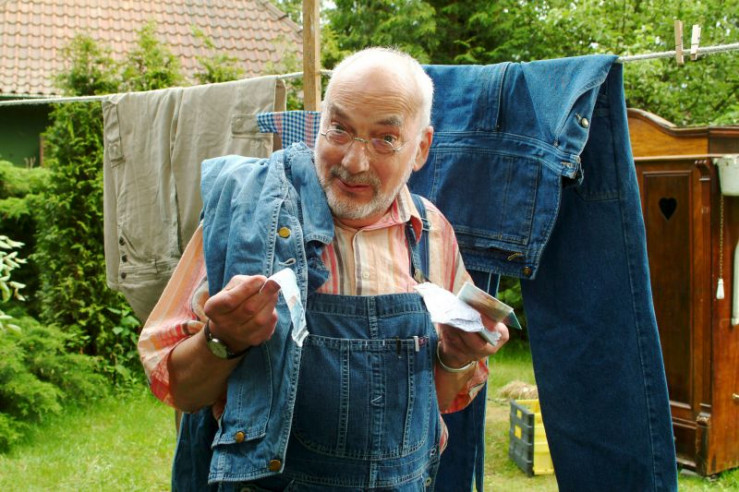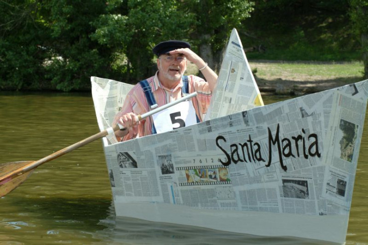Damit die Papierboote wasserfest werden, streicht Peter (Peter Lustig) sie mit Leim ein.