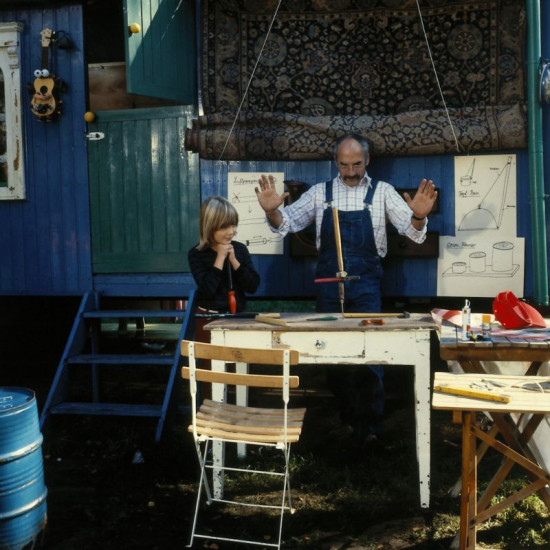 Peter und die Kinder bauen verschiedene Musikinstrumente. So entsteht aus einem Topf, einem Besen und Schnur ein Topf-Baß.