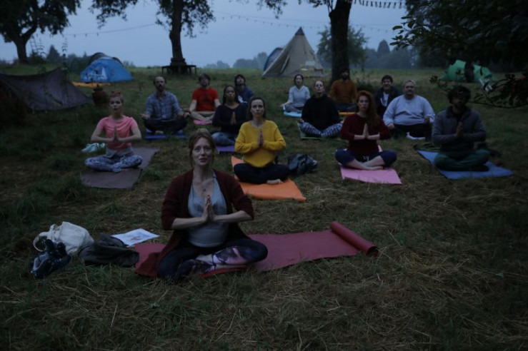 Am ersten Abend gibt Nina (Lavinia Wilson) für die anderen Eltern eine Yogastunde.
