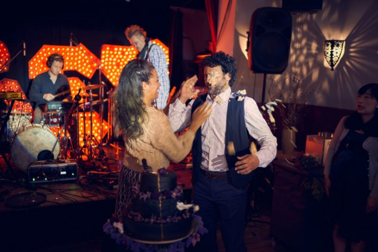 Yaa (Rebecca Lina) hat eine Scheidungsparty mit einer Zeremonie und schwarzer Scheidungstorte für sich und Björn (Serkan Kaya) organisiert.