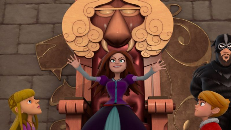 Morgan (M.) hat es geschafft: Sie hat ihre Kräfte zurück und ist an der Macht. Prinz John (r.) und Nelly (l.) sind verzaubert und ihr hörig.