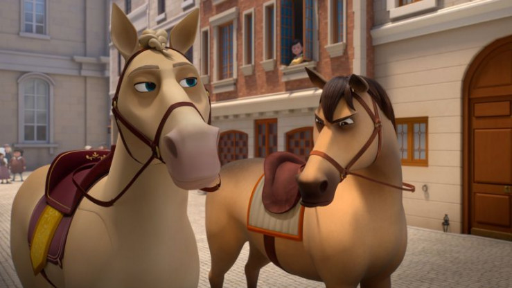 Saphir (l.) ist das geliebte Pferd von Herzog Buckingham. Richelieu lässt es entführen, was den Frieden zwischen England und Frankreich in Gefahr bringt.