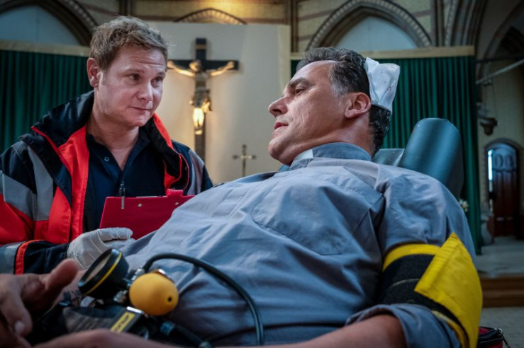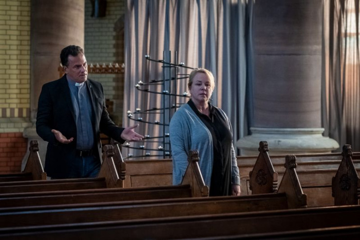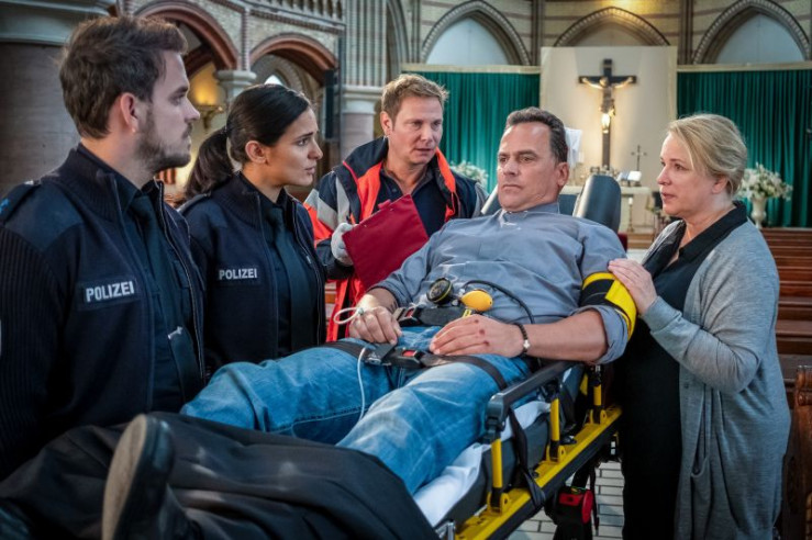 Pfarrer Lucas (Marcus Grüsser) ist ins Gebet vertieft als er niedergeschlagen und eine wertvolle Madonna aus seiner Kirche gestohlen wird.