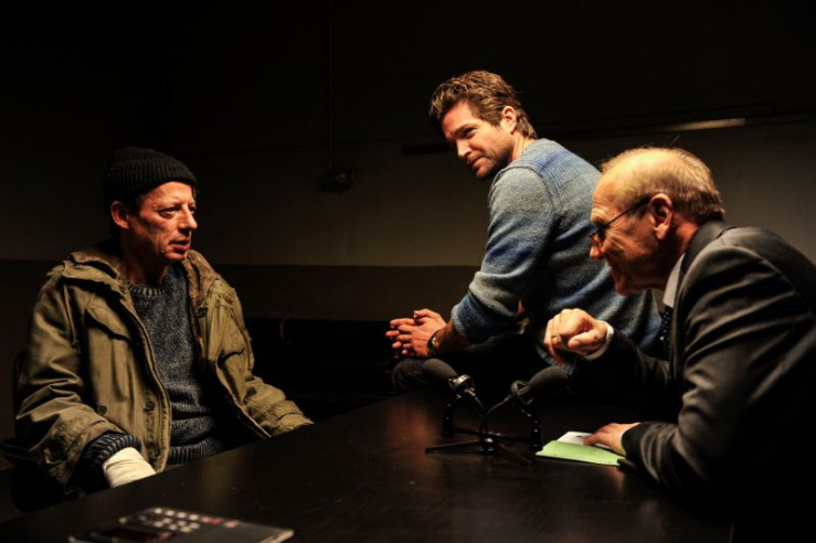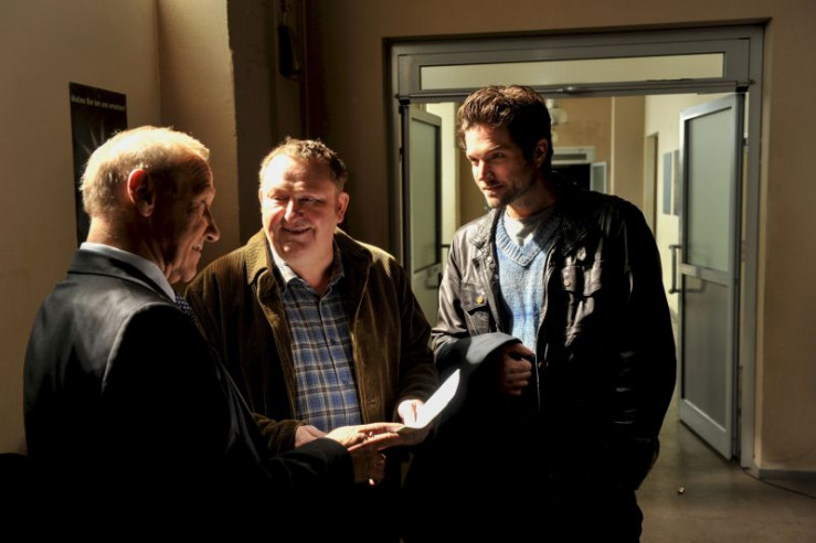 Die Kommissare Jo Stoll (Peter Ketnath, l.) und Selma Kirsch (Yve Burbach, r.) informieren die Bootsfrau Lisa Porst (Nina Vorbrodt, M.), dass der Kapitän Horst Weber tot im Frachtraum seines Schiffes gefunden wurde.