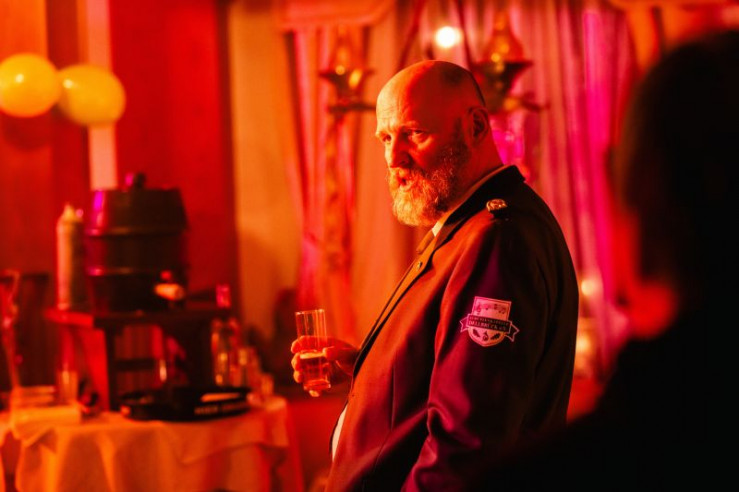 Während des Probenwochenendes einer Schützenkapelle wird die Dirigentin Nadja Schilling (Kaja Schmidt-Tychsen, l.) erschlagen im Wald aufgefunden. Dr. Westphal (Yulia Yáñez Schmidt, r.) erklärt den Kommissaren Jonas Fischer (Lukas Piloty, 2.v.r.) und Amira Mahdi (Aylin Ravanyar, 2.v.l.), dass der Tubist die Leiche gefunden hat.