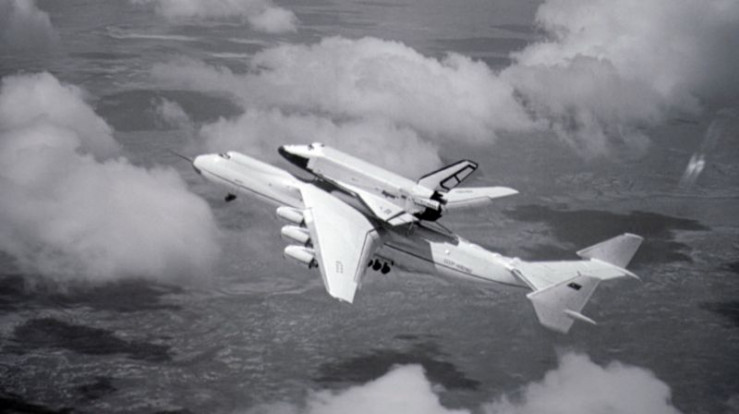 Das größte Flugzeug der Welt die legendäre AN 225 MRIJA mit der sowjetischen Raumfähre BURAN auf dem Rücken - ein ikonisches Bild aus dem Jahr 1989