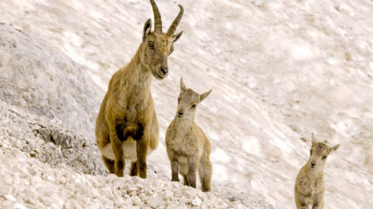 Der frische Nachwuchs der Steinböcke muss vom ersten Tag an Gelände gängig sein.