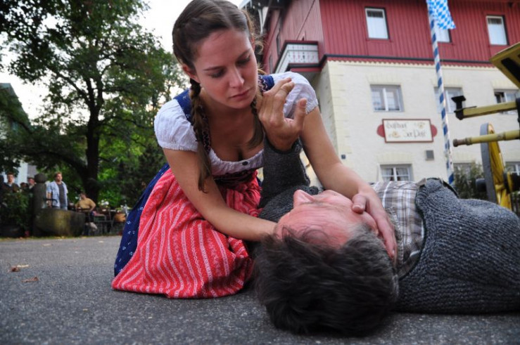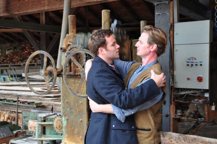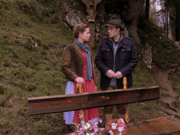 Nachdem der Sägewerksbesitzer Mühlbacher (Martin Goldes) keinen anderen Ausweg sieht, willigt er ein, der Gast- und Landwirtsfrau Charlotte (Bettina Redlich), das Schinderhölzl zu verkaufen, um mit dem Geld seine Schulden begleichen zu können. Weiteres Bildmaterial finden Sie unter www.br-foto.de.