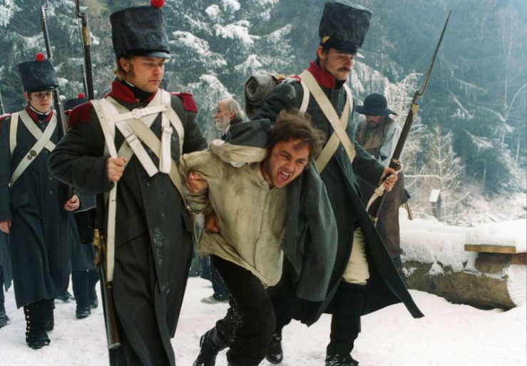 Hofers Sekretär Kajetan Sweth (Guntram Brattia, Mitte) wird von bayerischen Soldaten abgeführt.