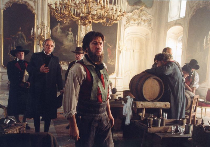 Der Innsbrucker Bürgermeister Kasimir Schumacher (Toni Böhm, 2. von links) ist fassungslos angesichts der plündernden Bauern um Andreas Hofer (Tobias Moretti, Mitte).
