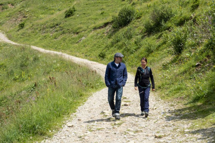 Von links: Claudia Höß, Christoph Misoph und Schmidt Max im Gespräch auf einer Berghütte.