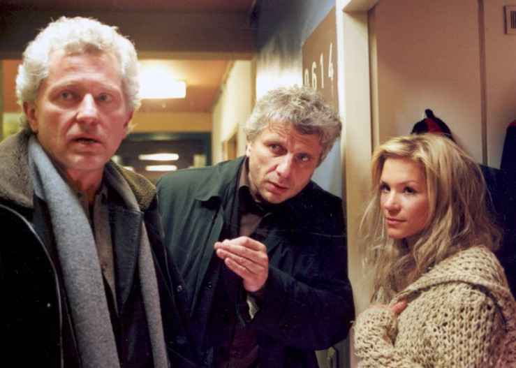 Der Vater der Ermordeten Ludwig Thaller (Michael Brandner, links) folgt den beiden Kommissaren Franz Leitmayr (Udo Wachtveitl, Mitte) und Ivo Batic (Miroslav Nemec) bei ihren Ermittlungen.