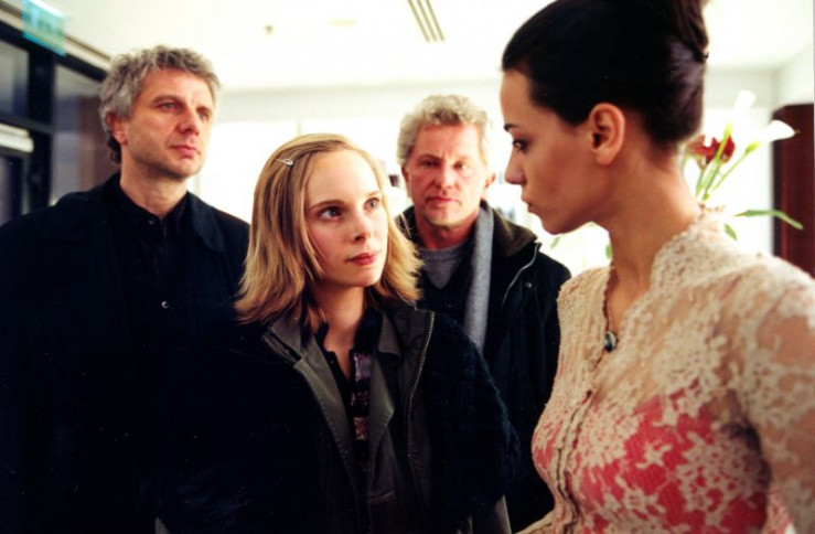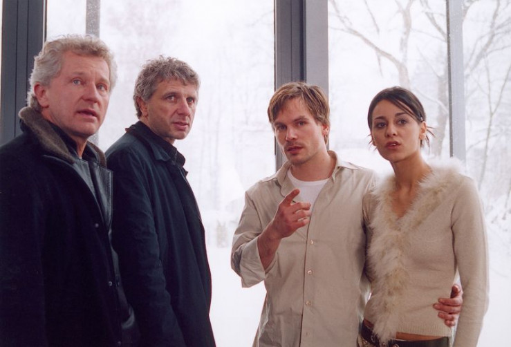 Treffen auf den erfolgreichen und jungen Oliver Hufland (Wanja Mues, 2. von rechts) und seine hübsche Freundin Katja Weiss (Edita Malovcic): die Kommissare Ivo Batic (Miroslav Nemec, links) und Franz Leitmayr (Udo Wachtveitl).
