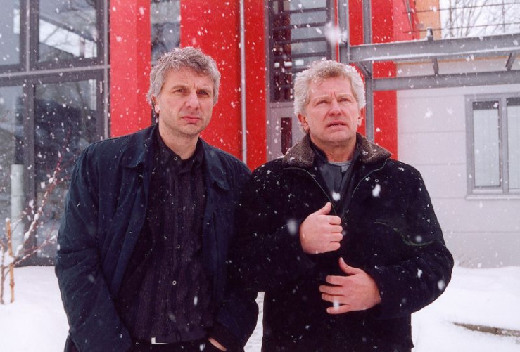 Die beiden Kriminalhauptkommissare Franz Leitmayr (Udo Wachtveitl, links) und Ivo Batic (Miroslav Nemec) fahren alle Porsche-Cayenne-Besitzer ab und suchen nach dem Mörder.