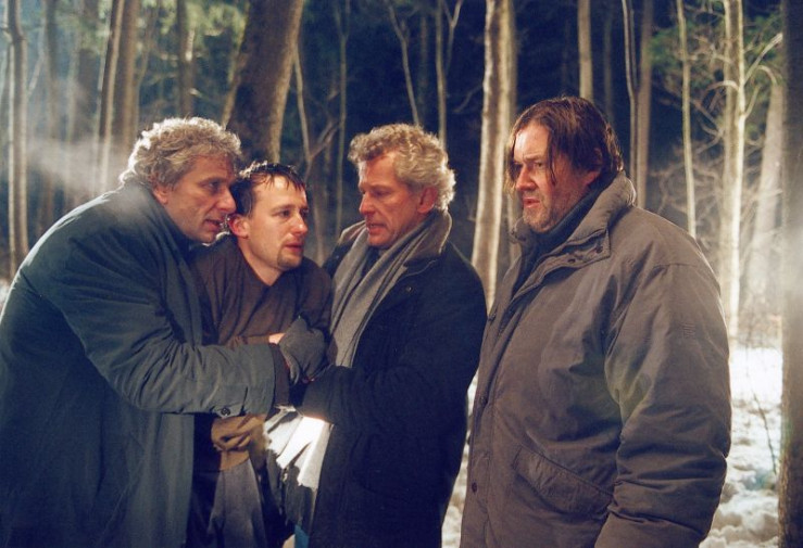 Eisiger Mordfall (von links): die Münchner Kommissare Franz Leitmayr (Udo Wachtveitl), Carlo Menzinger (Michael Fitz) und Ivo Batic (Miroslav Nemec) im BR-Tatort "Schneetreiben". [Fotomontage]