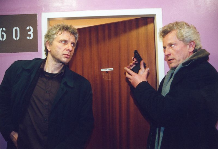 Mischt sich ständig in die Ermittlungen der Kommissare Ivo Batic (Miroslav Nemec, Mitte) und Franz Leitmayr (Udo Wachtveitl, links) ein: der verzweifelte Vater der Toten, Ludwig Thaller, ein fliegender Händler (Michael Brandner).