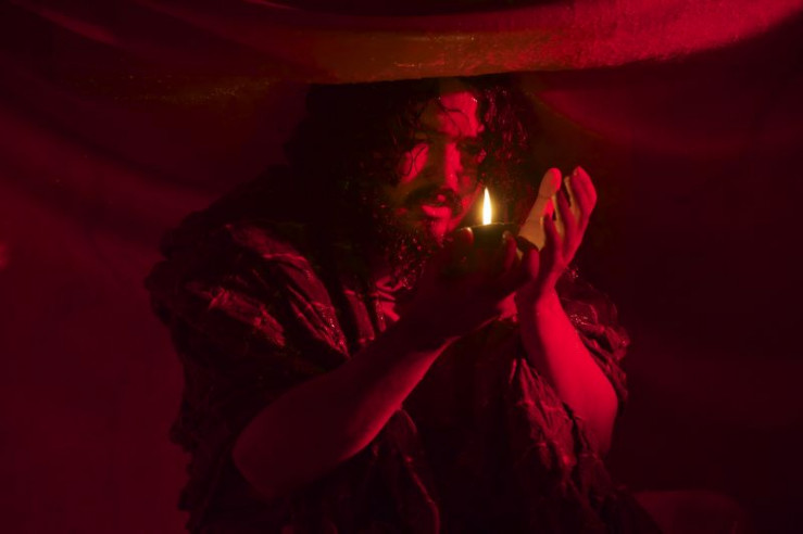 Der assyrische König Asarhaddon betet zur Gottheit IÅ¡tar (Reenactment).