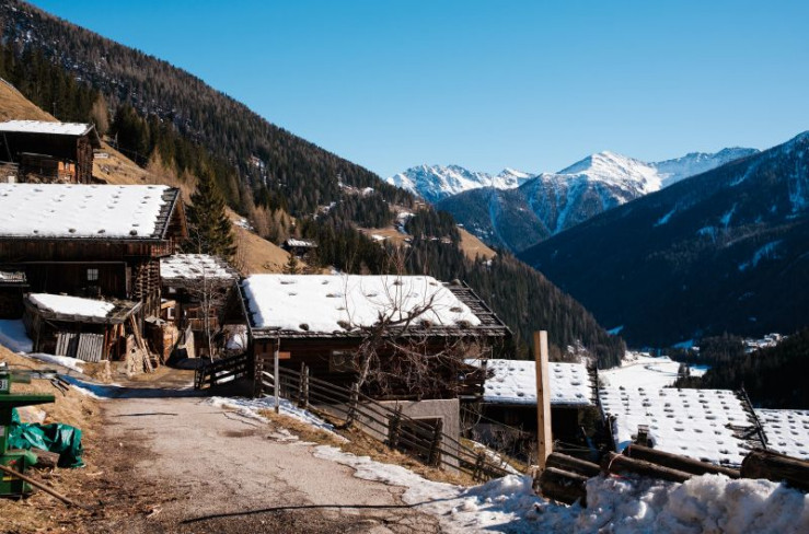 Südtirol im Winter: Die urigen Pilshöfe im Ultental.
