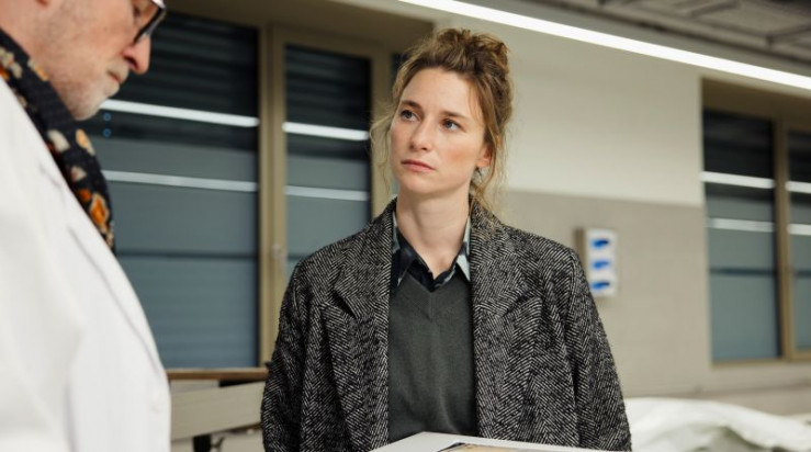 Hauptkommissarin Anna Grünwald (Lisa Schützenberger, re.) und ihr Kollege Kevin Ganslinger (Franz Josef Danner) sehen sich die Leiche des zweiten Opfers an.