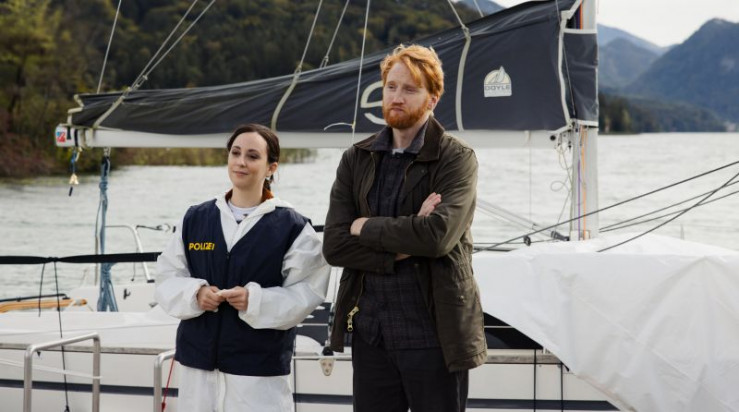 Kommissarin Grünwald (Lisa Schützenberger) und Ganslinger (Franz Josef Danner) auf dem Weg zum Segelboot - dem Fundort des ersten Opfers. Ganslinger informiert sie über die Identiät des Opfers.