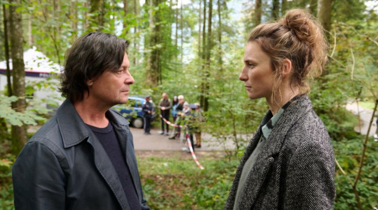 Kriminalpsychologe Meiberger (Fritz Karl, li.) und Hauptkommissarin Anna Grünwald (Lisa Schützenberger) besprechen am Fundort der zweiten Leiche das weitere Vorgehen.