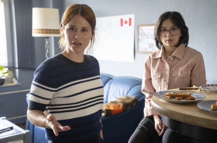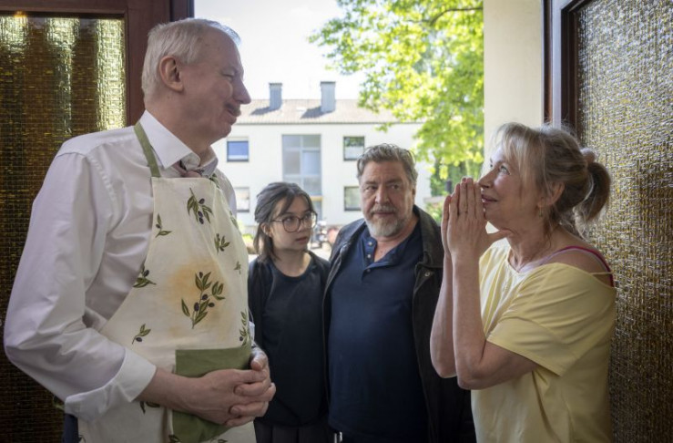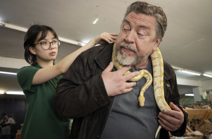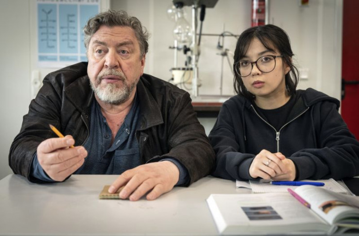 Günther Kuballa (Armin Rohde, l) besucht mit Ta (Purnima Grätz, r) ihre Schule und mischt sich in den Chemieunterricht ein.