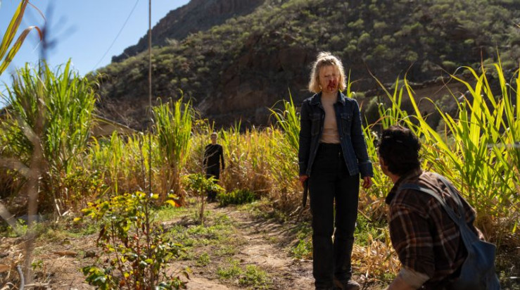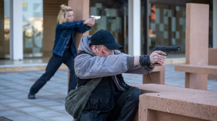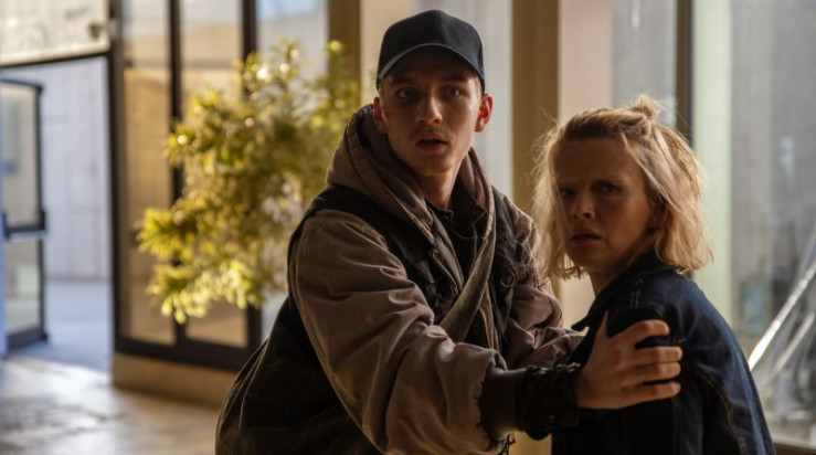 Kai (Julius Gause, li.) und Maggie (Karoline Schuch) versuchen Vera (Emily Kusche) vor Quito und seinen Helfern zu retten.