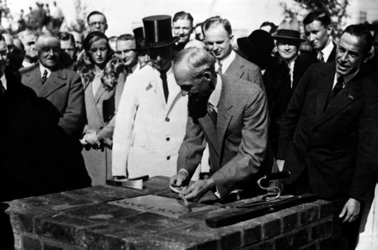 2. Oktober 1930, Köln: Henry Ford bei der Grundsteinlegung für das Ford-Werk in Köln-Niehl.