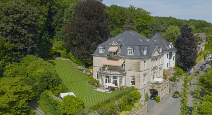 Die Schwebebahn führt uns auch zur Bayer AG, 1863 in Wuppertal gegründet, und einem versteckten "Schlösschen", das Friedrich Bayer seiner Familie als Wohnhaus errichtet hatte.