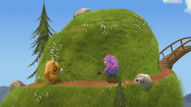 Kiwi findet den Schnurrbart, den ihm Strit ins Gesicht gemalt hat, nicht lustig.